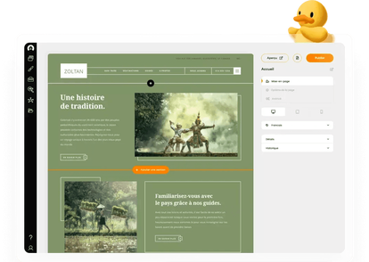 RubberDuck rend la gestion de sites web plus facile que jamais. Il combine la simplicité et la rapidité d'un website builder aux fonctionnalités et aux performances d'un CMS.