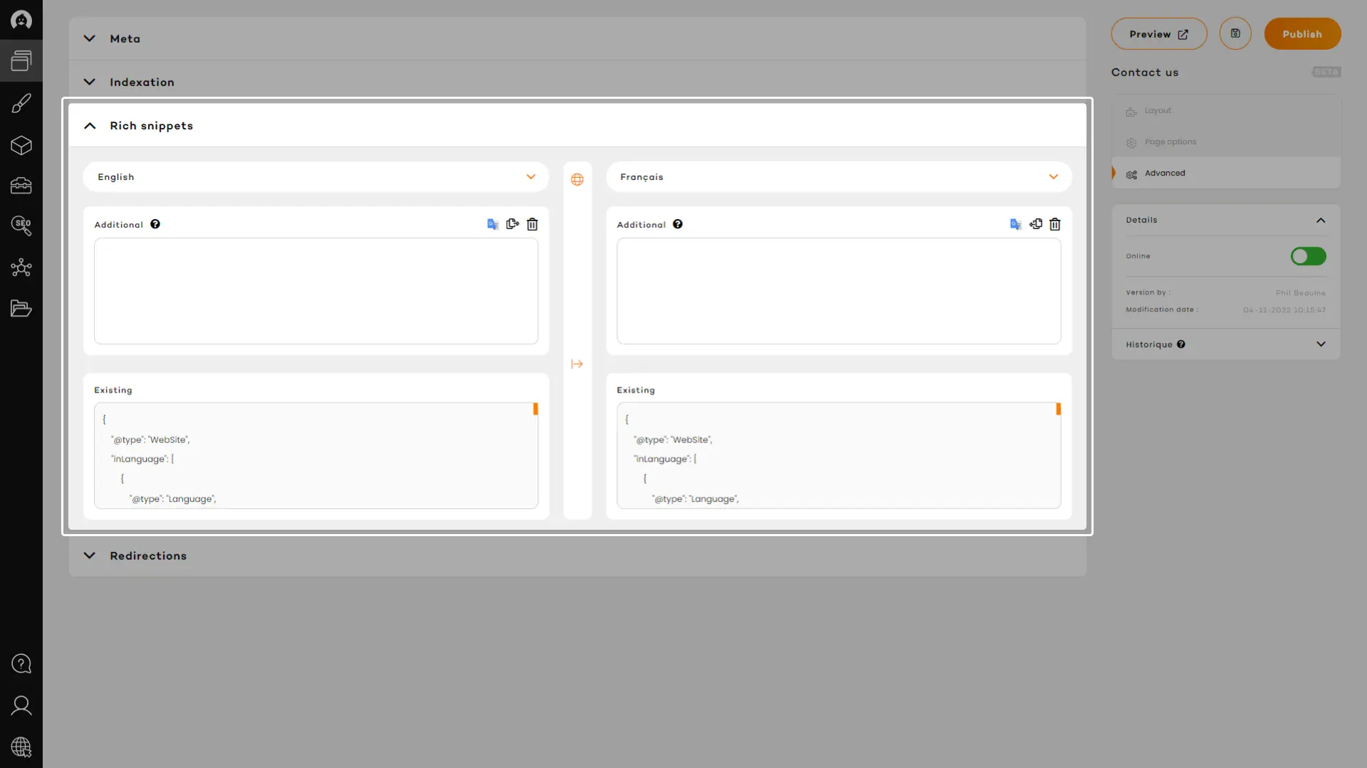 Most pages come with a set of standard rich snippets, but you also have the possibility to add more if you wish (for advanced users).