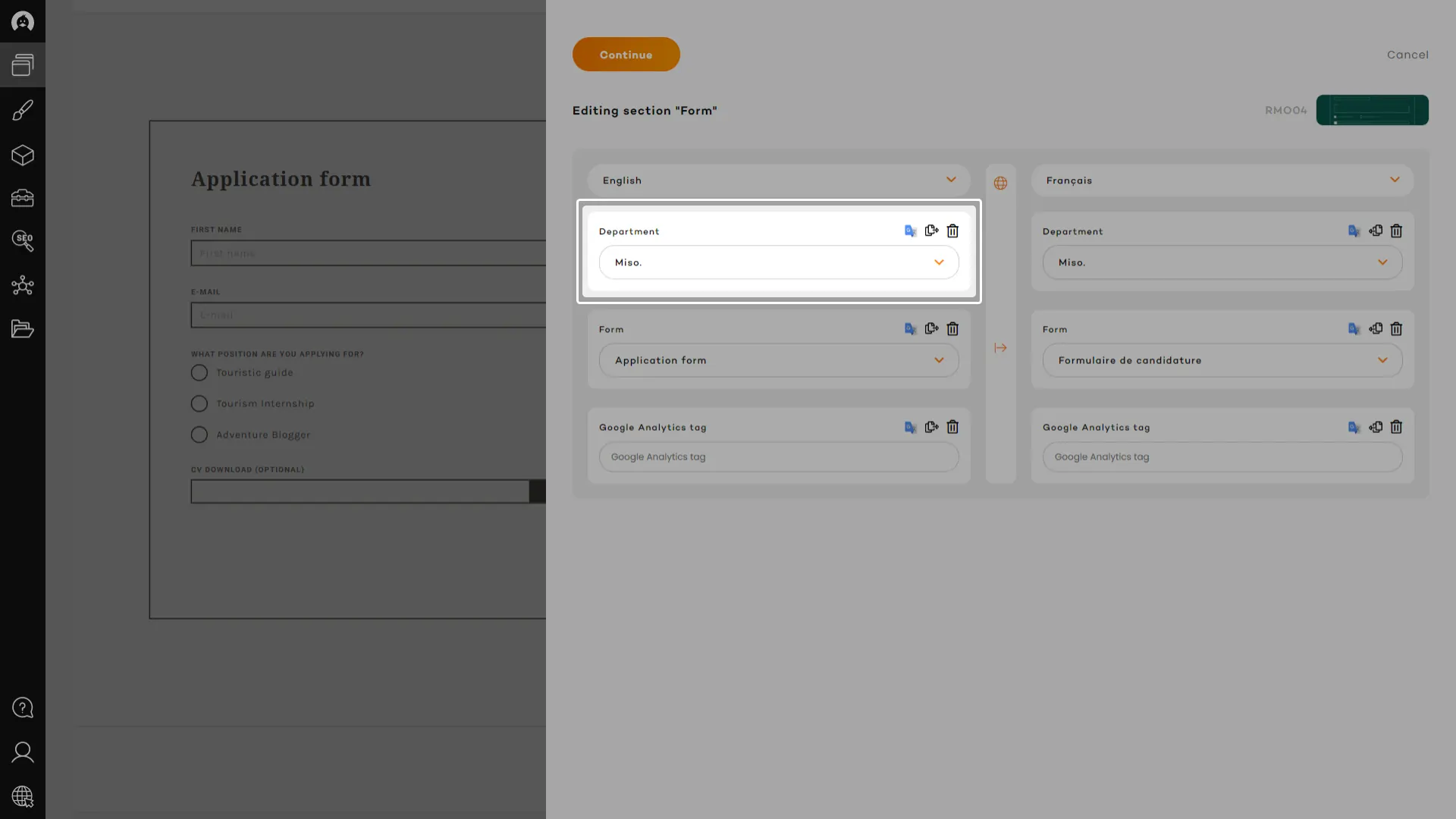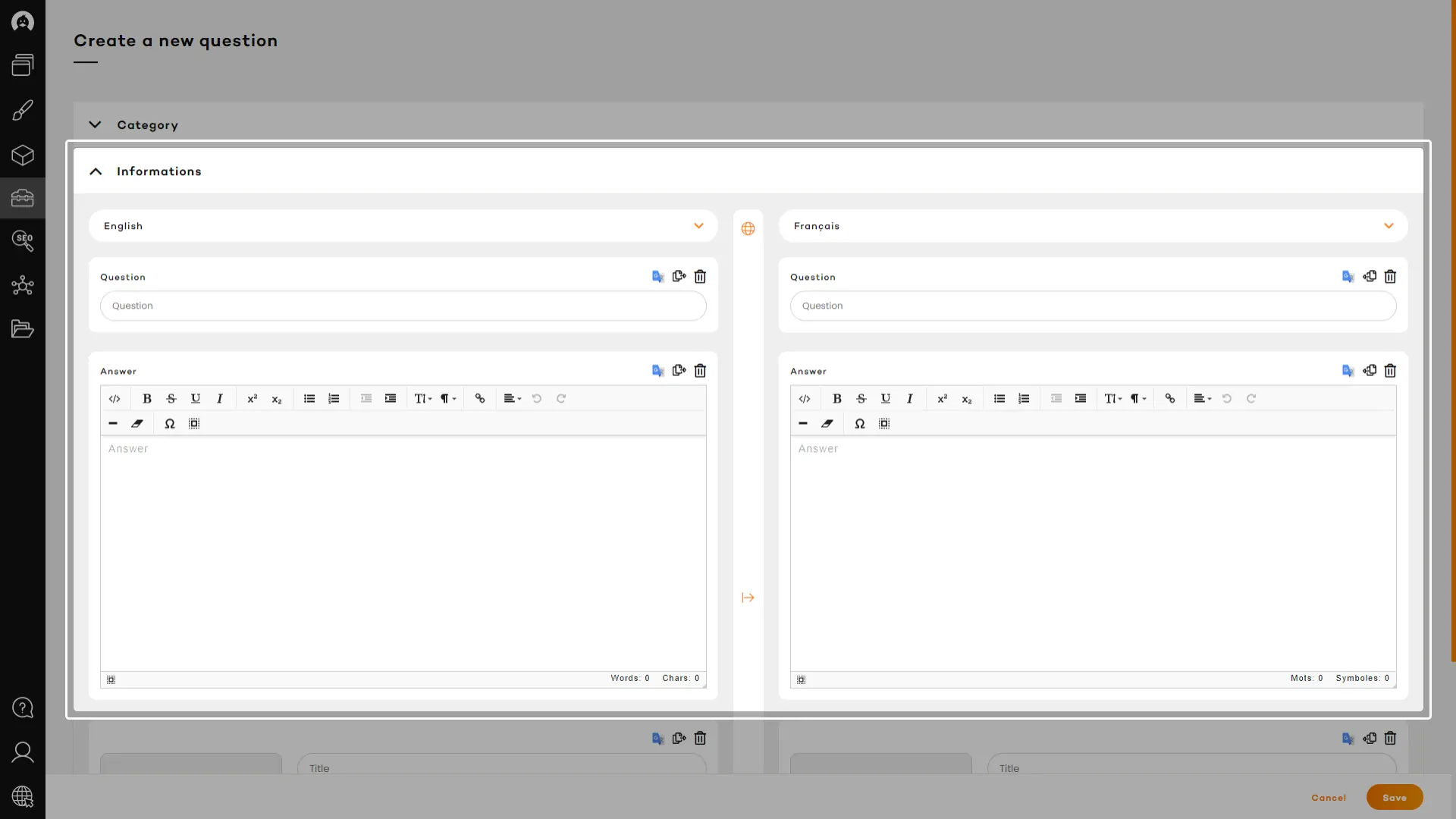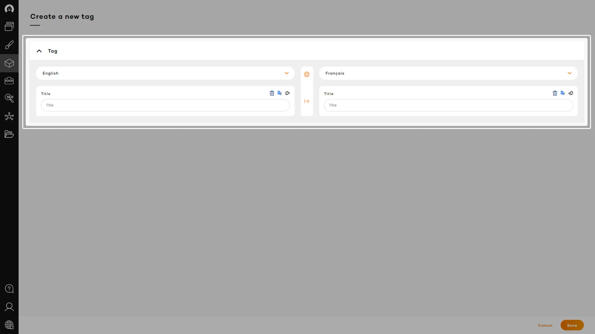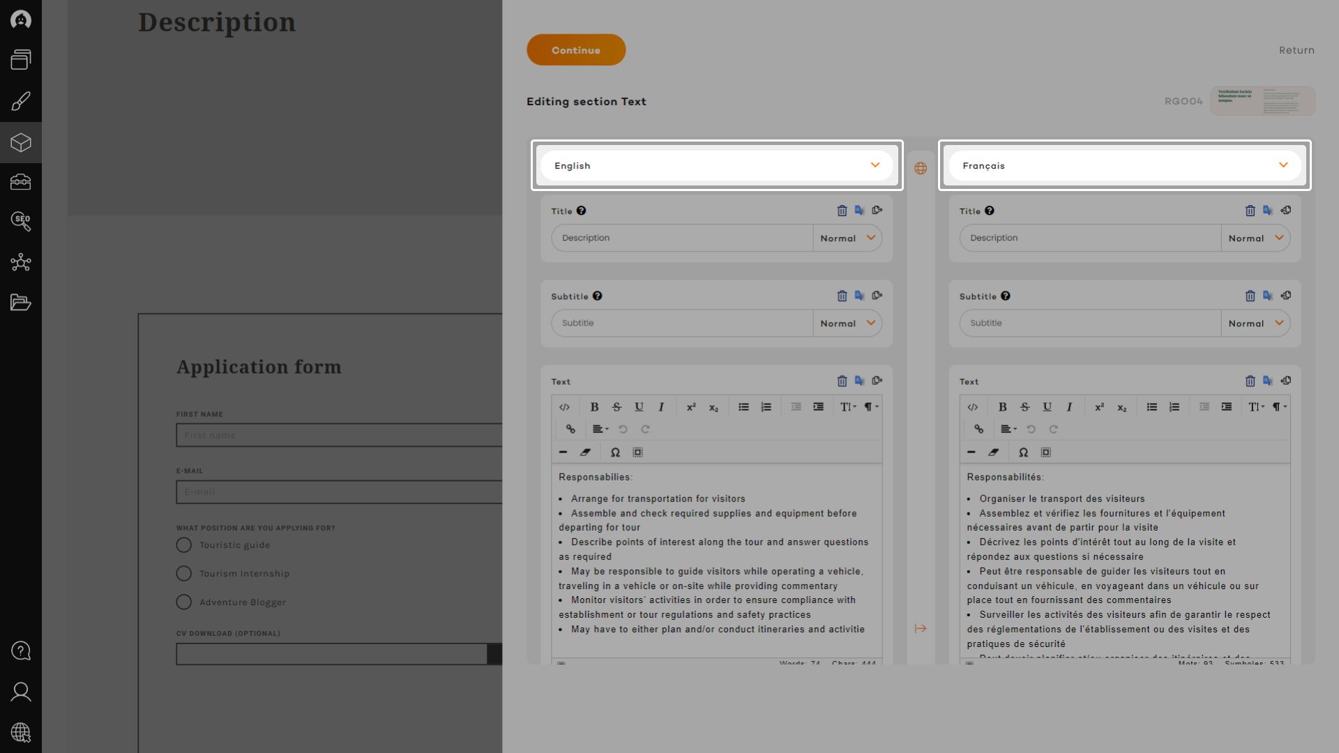 A quick translate function, available for every content field, will let you instantly translate content that was previously added or copied from another panel, in the language of the active panel, using Google Translate always improving API.