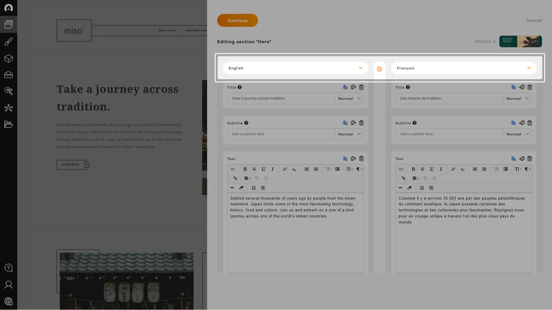 best-in-class multi-language management lets you add as may language as you