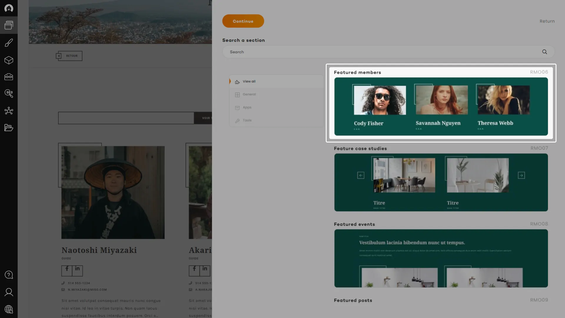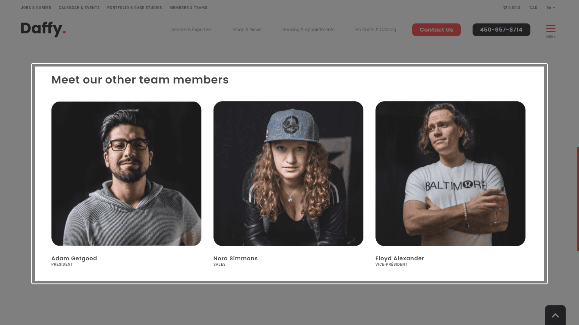 The “Featured members” section can be used anywhere on the website to showcase distinguished or interesting members of the team or association.