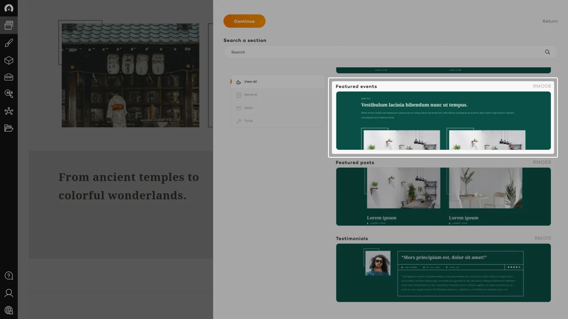 The Testimonies tool lets you create and manage all types of testimonies from your clients or business partners. It comes with “Featured testimonies” section that you can position anywhere you want in your website.